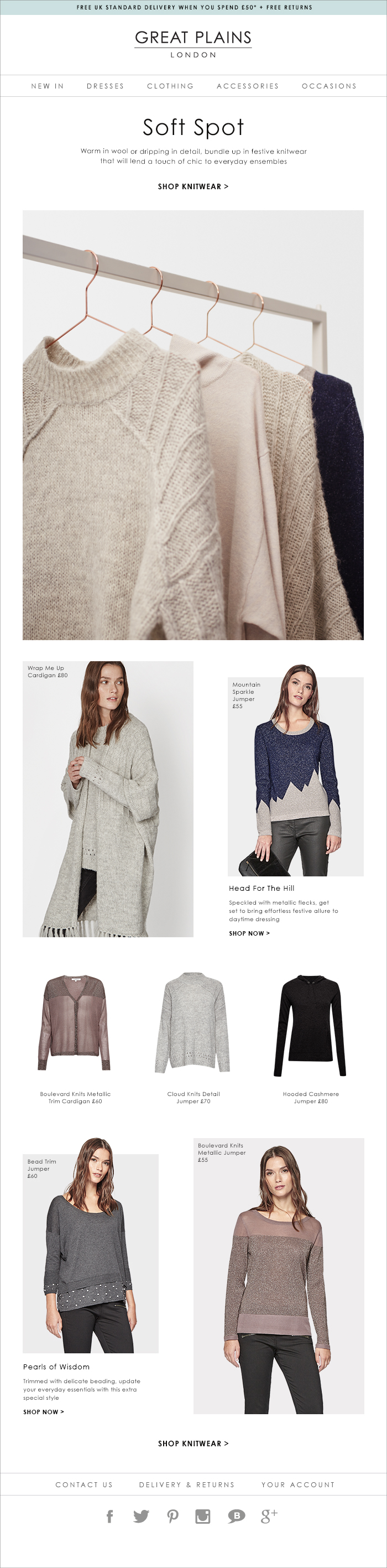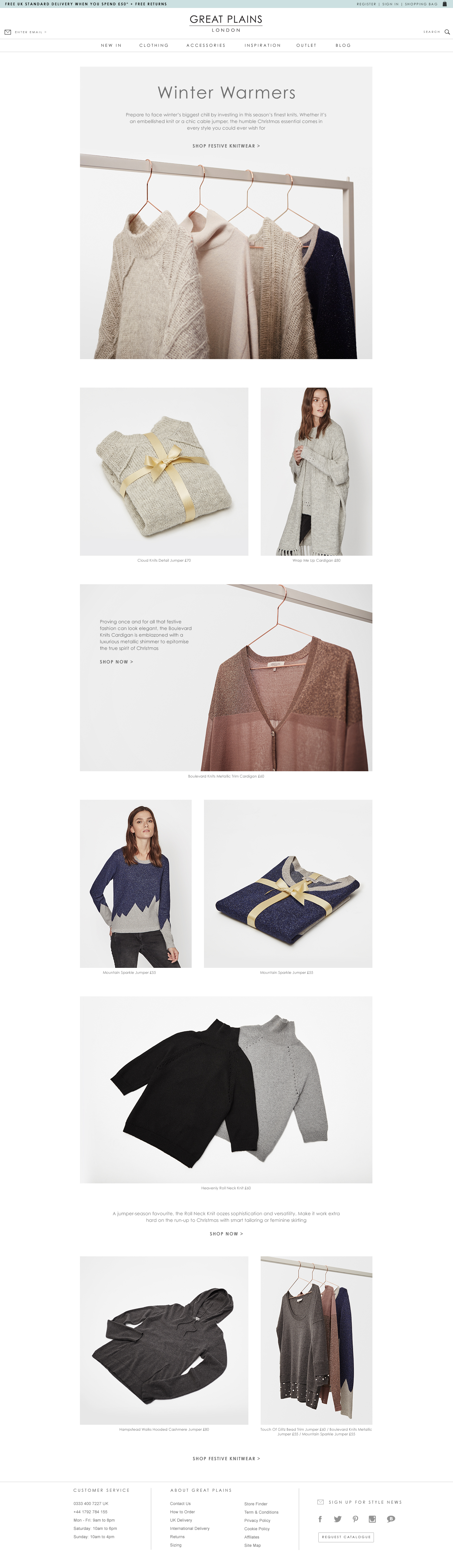 Art direct a festive knitwear shoot with the in-house studio team. Then present these images within a responsive landing page and email to showcase some of the best winter warmers of the season.