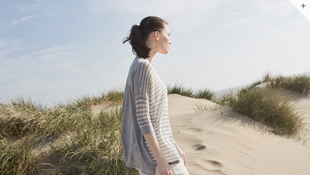 The Great Plains lightweight summer knitwear shot in the first of the morning’s rays out on the dunes of Camber Sands. Create a responsive landing page feature and email to showcase the images and collection.